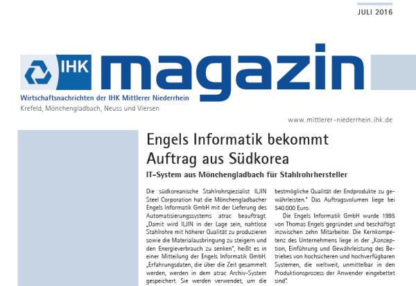 Das Wirtschaftsmagazin der IHK Mittlerer Niederrhein berichtet über unseren Auftrag aus Südkorea: